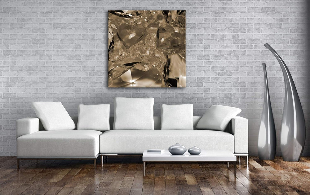 deyoli rote Herzen aus Kristallglas Format: 60x60 Effekt: Sepia als Leinwandbild, Motiv auf Echtholz