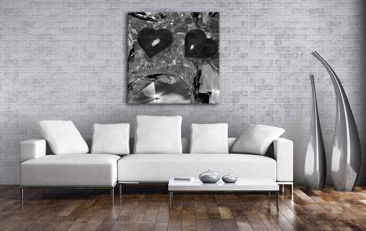 deyoli rote Herzen aus Kristallglas Format: 70x70 Effekt: Schwarz&Weiss als Leinwandbild, Motiv auf