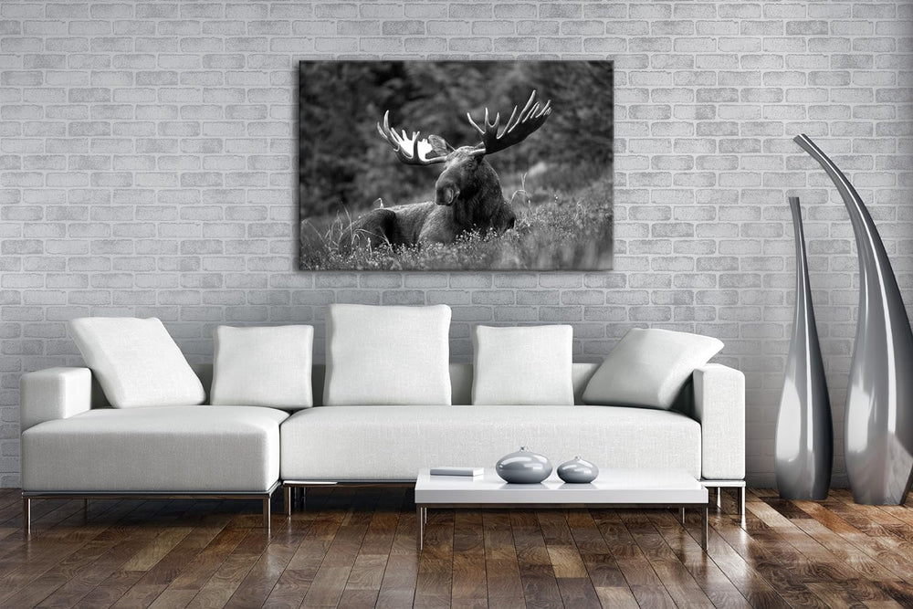 deyoli ruhig liegender Elch Effekt: Schwarz/Weiss Format: 80x60 als Leinwandbild, Motiv fertig gerah