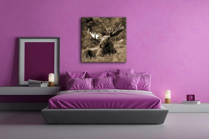 deyoli ruhig liegender Elch Format: 60x60 Effekt: Sepia als Leinwandbild, Motiv fertig gerahmt auf E