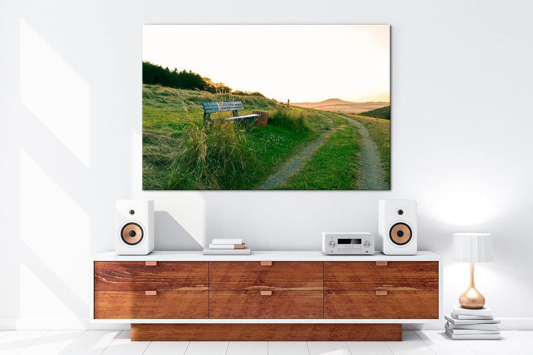 deyoli ruhige Bank am Feldweg Format: 100x70 als Leinwandbild, Motiv fertig gerahmt auf Echtholzrahm
