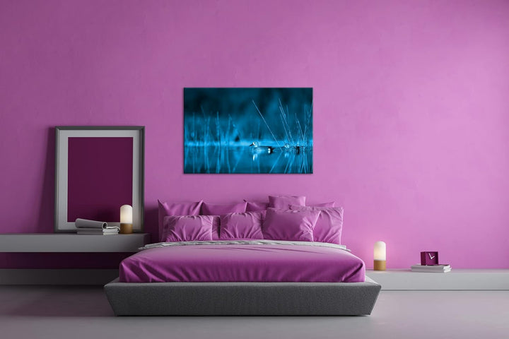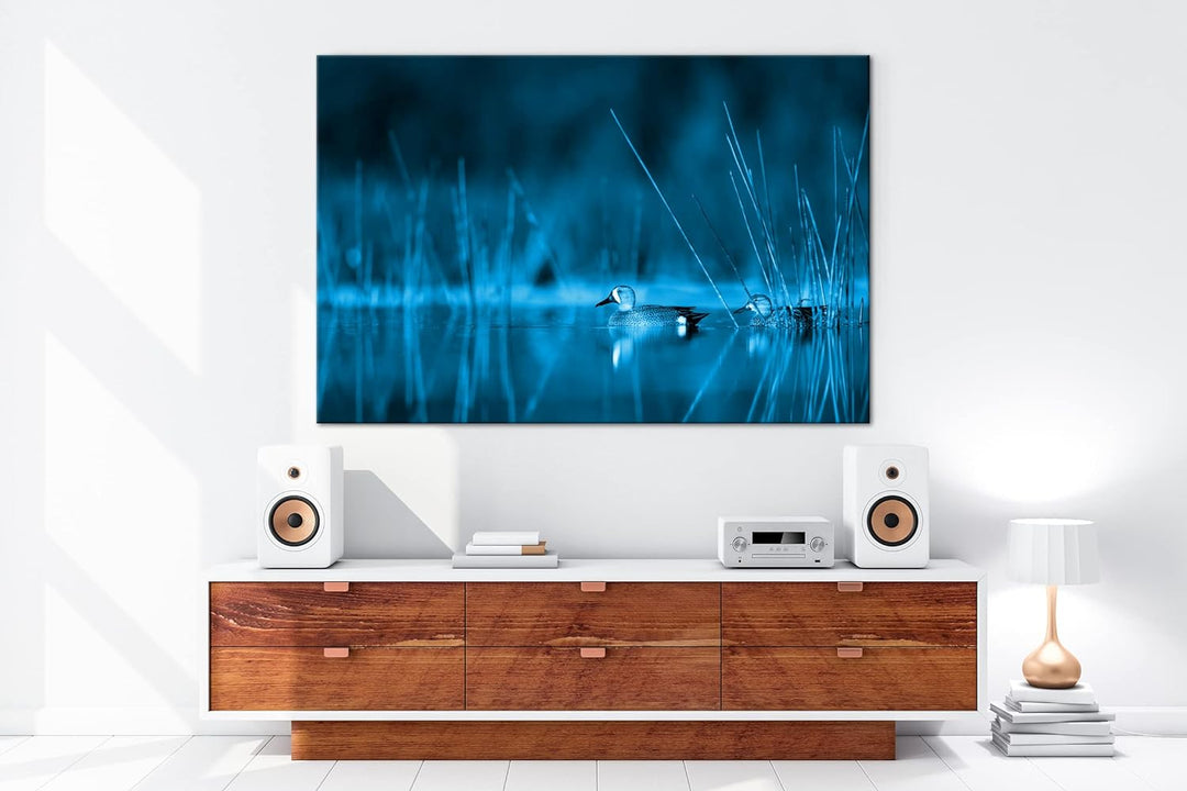 deyoli ruhige Enten auf einem See Format: 100x70 Effekt: Monocrome Blau als Leinwand, Motiv fertig g