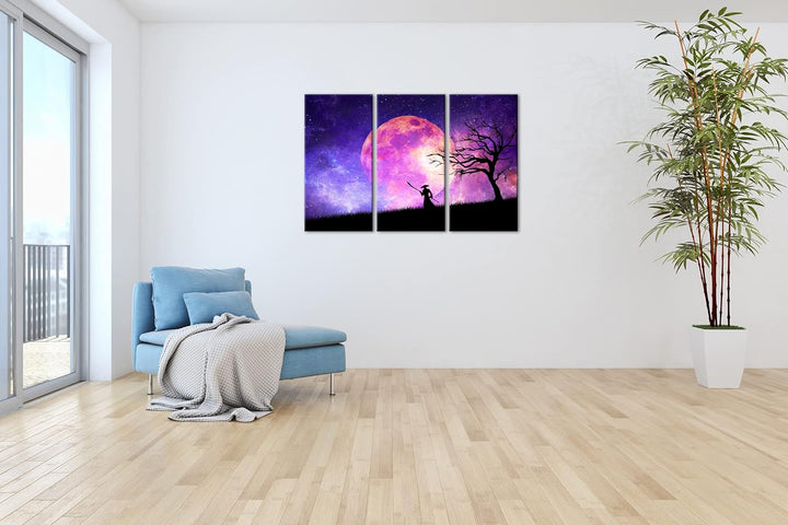 deyoli Samurai im Mondschein Format: 3Teilig als Leinwandbild, Motiv fertig gerahmt auf Echtholzrahm