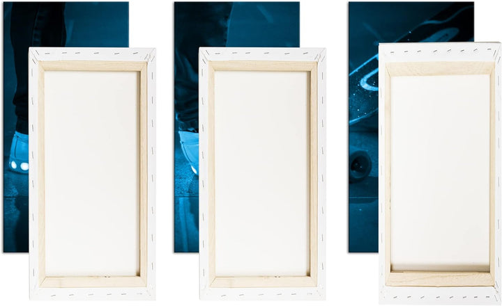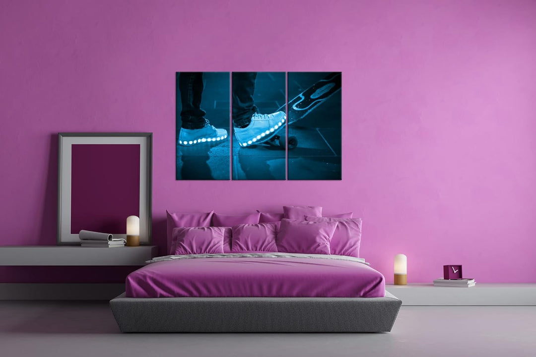 deyoli Skateboardfahrer mit leuchtenden Schuhen Format 120x80 3Teilig Effekt: Monocrome Blau als Lei