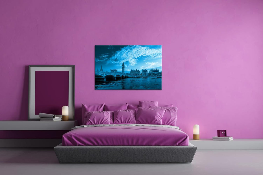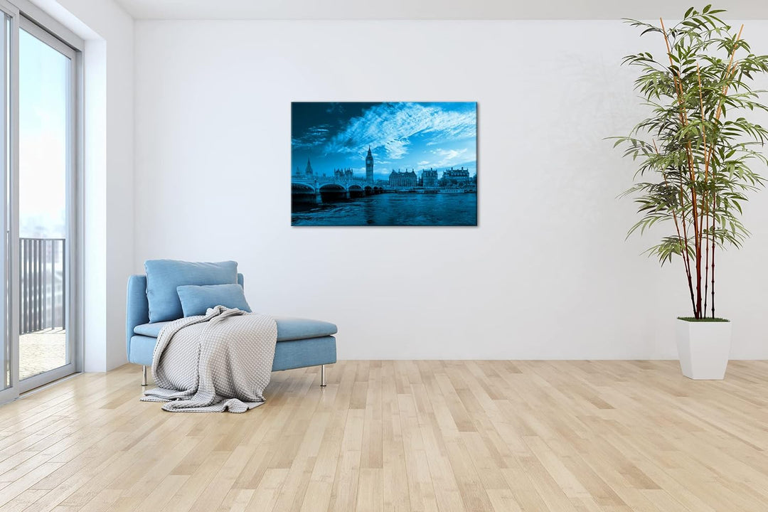 deyoli Skyline London Format: 80x60 Effekt: Monocrome Blau als Leinwandbild, Motiv fertig gerahmt au
