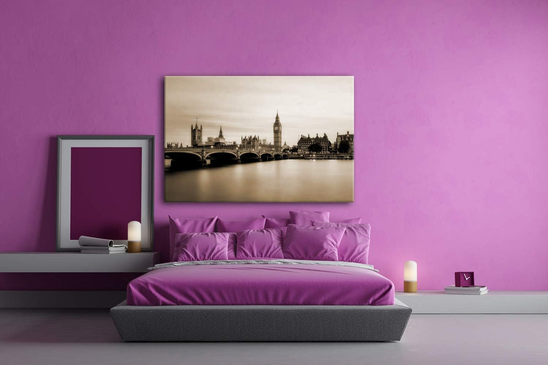 deyoli Skyline von London Format: 80x60 Effekt: Sepia als Leinwandbild, Motiv fertig gerahmt auf Ech