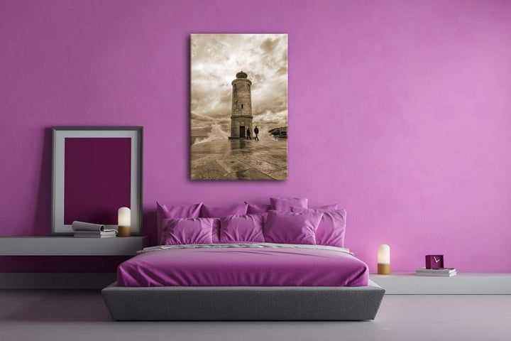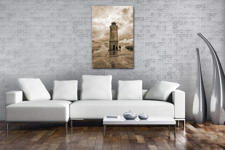 deyoli standfester Leuchtturm Format: 60x40 Effekt: Sepia als Leinwand, Motiv fertig gerahmt auf Ech