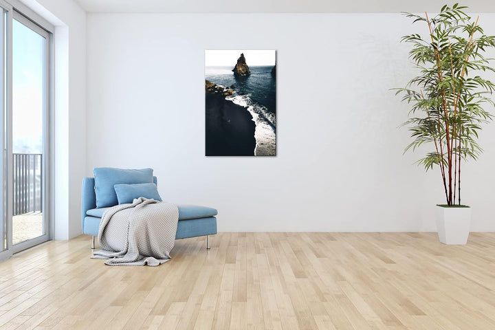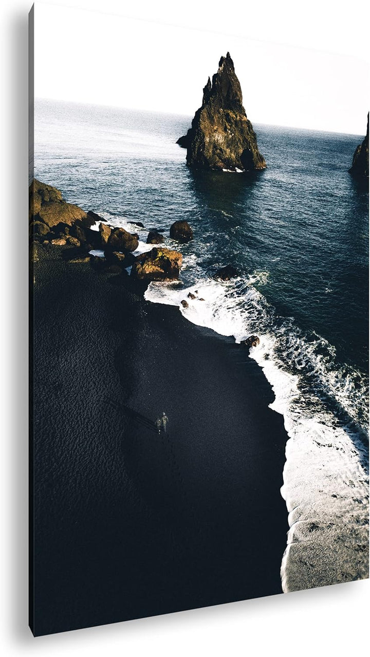 deyoli steinige Küste Format: 80x60 cm als Leinwandbild, Motiv fertig gerahmt auf Echtholzrahmen, Ho