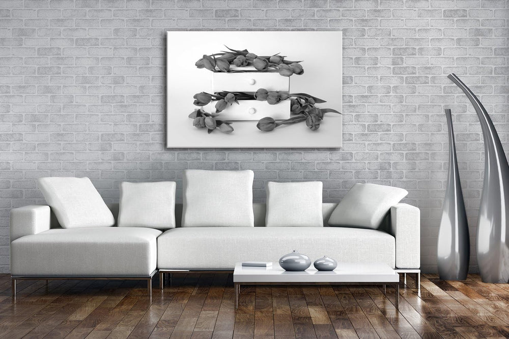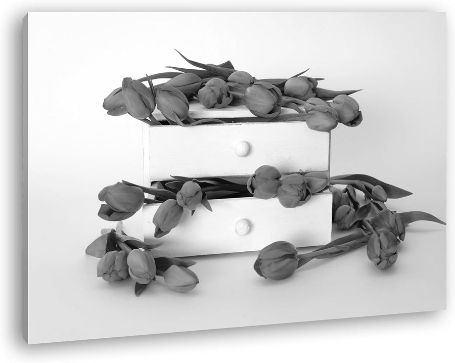 deyoli wild verstreute Tulpen Format: 80x60 Effekt: Schwarz/Weiss als Leinwand, Motiv fertig gerahmt