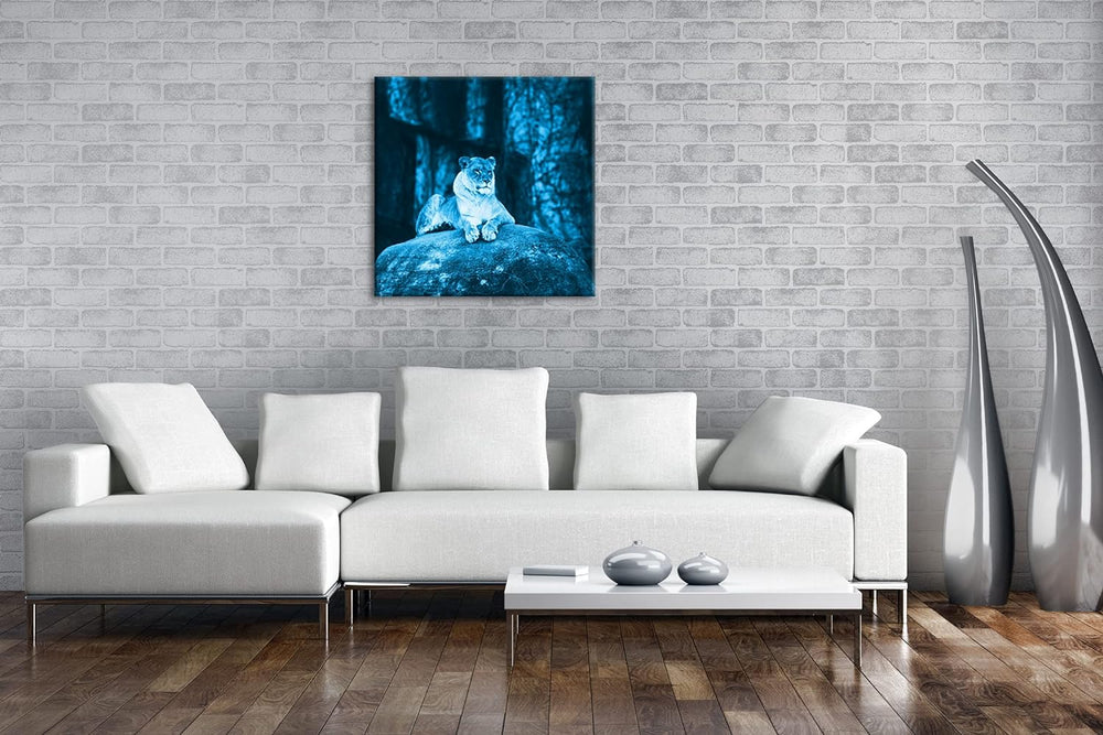 deyoli erhabene stolze Löwin Format: 60x60 Effekt: Monocrome Blau als Leinwand, Motiv fertig gerahmt
