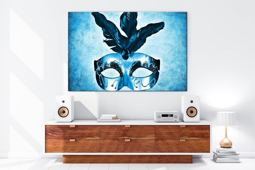 deyoli Karnevals Maske Format: 80x60 Effekt: Monocrome Blau als Leinwand, Motiv fertig gerahmt auf E