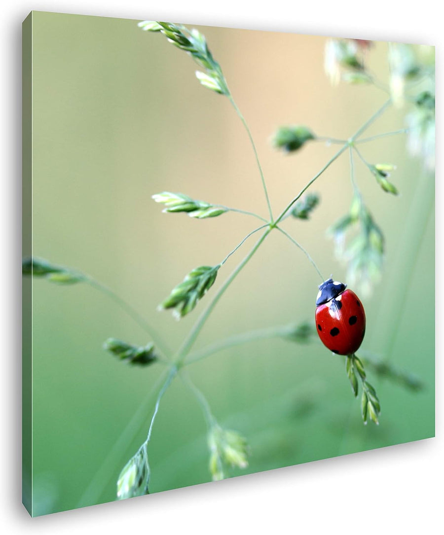 deyoli Kleiner roter Marienkäfer Format: 60x60 als Leinwandbild, Motiv fertig gerahmt auf Echtholzra