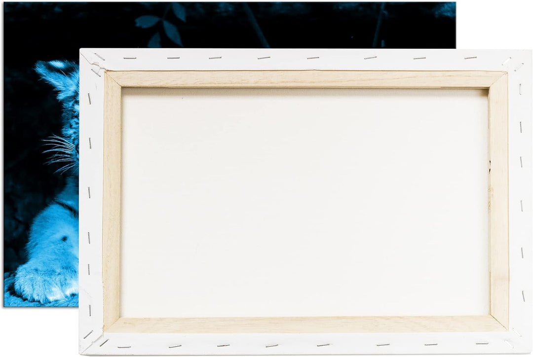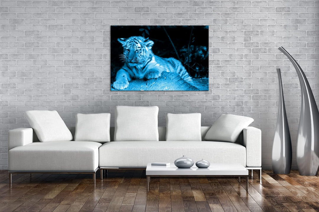 deyoli kleiner verschlafener Tiger Format 80x60 Effekt: Monocrome Blau als Leinwandbild, Motiv ferti