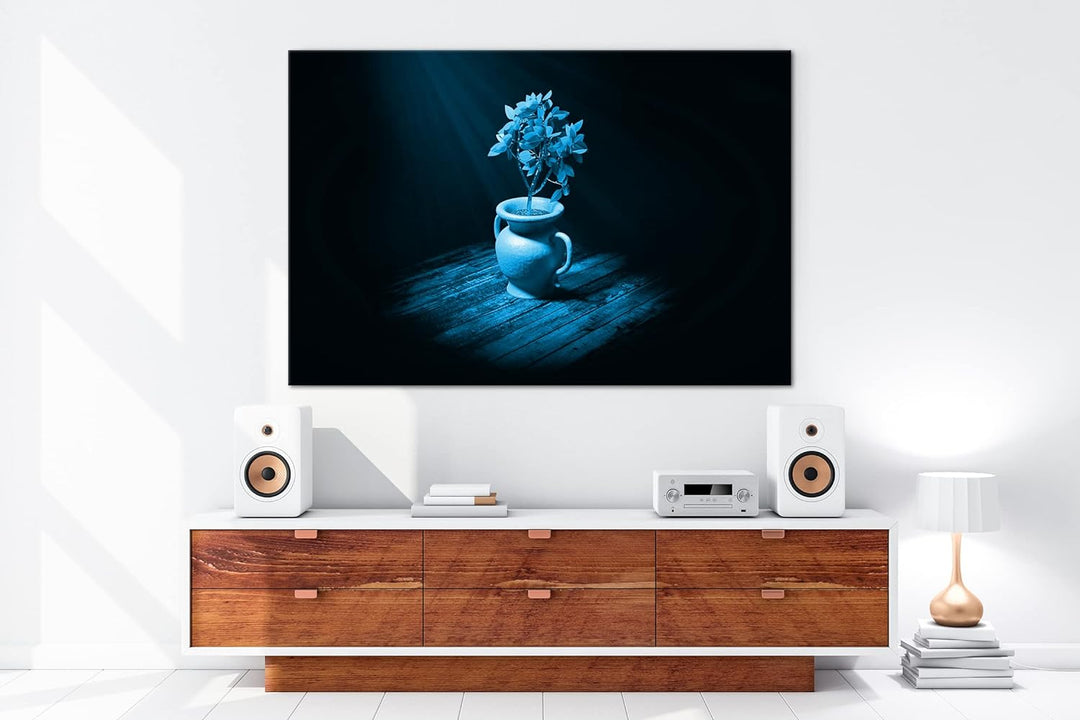 deyoli Kleines Bäumchen Format: 80x60 Effekt: Monocrome Blau als Leinwandbild, Motiv fertig gerahmt