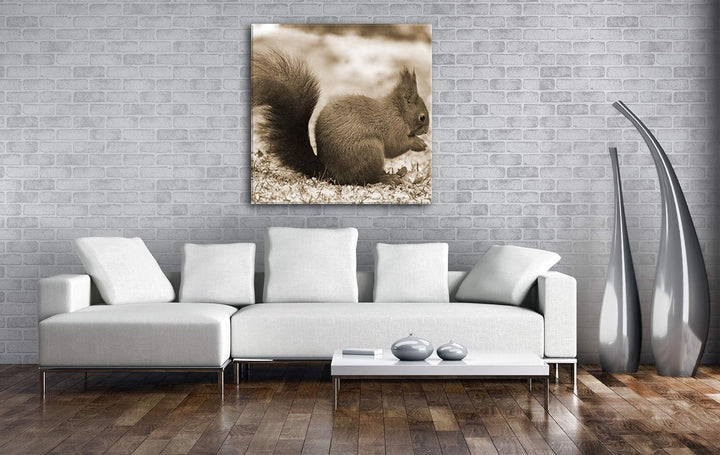deyoli kleines Eichhörnischen Format: 60x60 Effekt: Sepia als Leinwandbild, Motiv fertig gerahmt auf