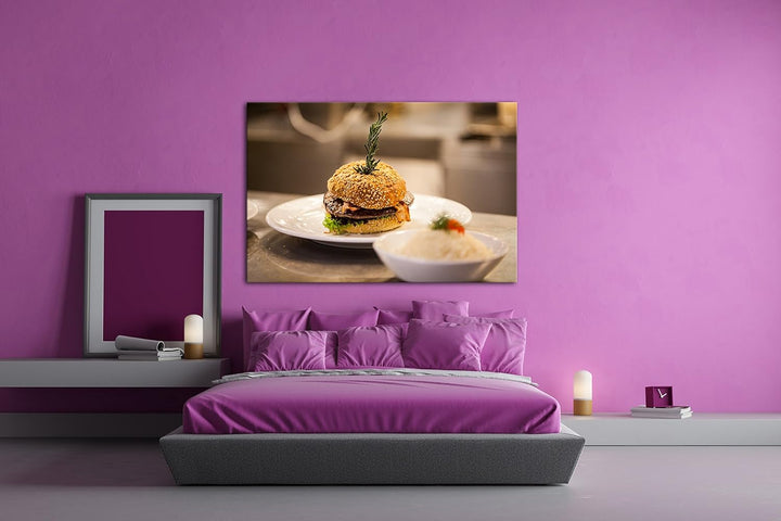 deyoli köstlicher Hamburger im Format: 80x60 als Leinwandbild, Motiv fertig gerahmt auf Echtholzrahm