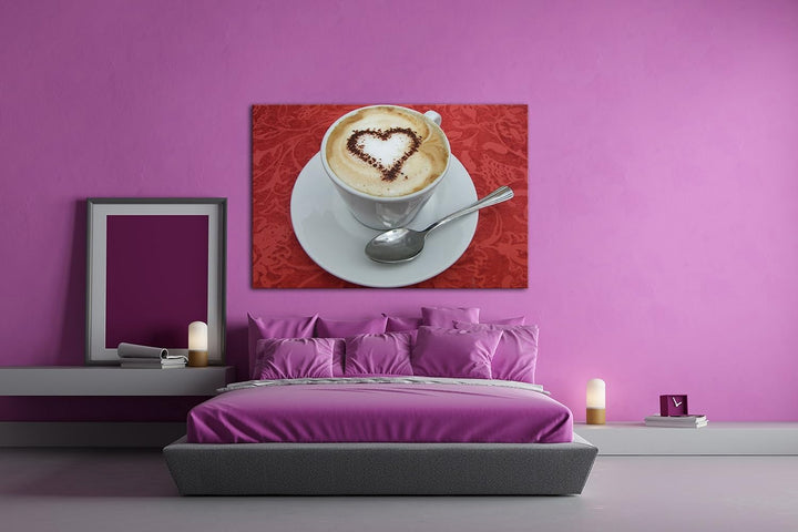 deyoli kunstvoller Kaffee mit Herz Format: 80x60 als Leinwandbild, Motiv fertig gerahmt auf Echtholz