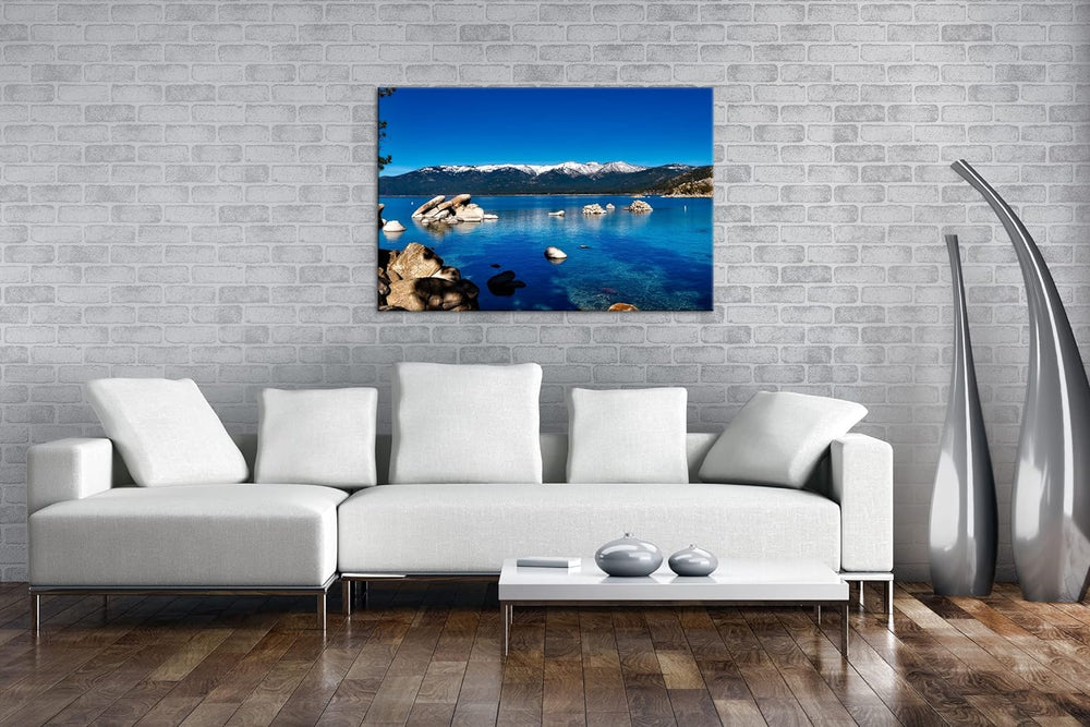 deyoli Lake Tahoe in Kalifornien Format: 80x60 als Leinwand, Motiv fertig gerahmt auf Echtholzrahmen