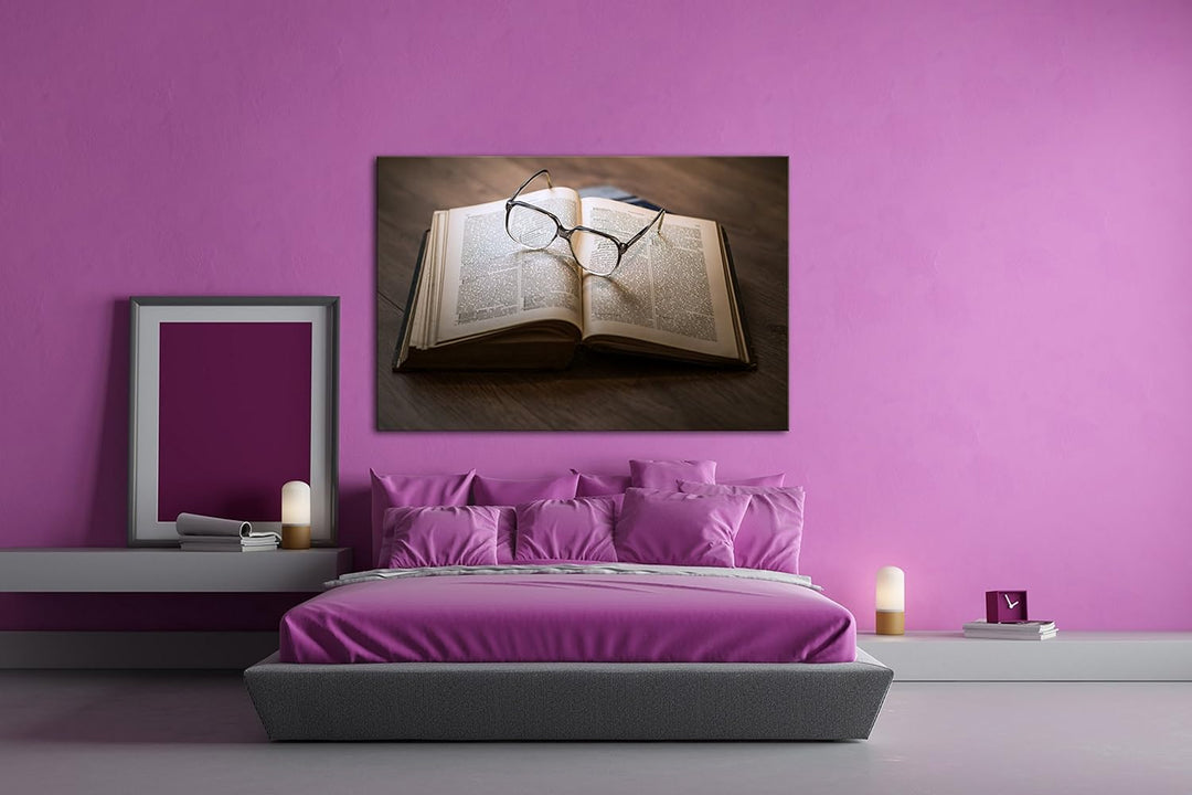 deyoli Lesebrille auf Literatur Format: 80x60 als Leinwandbild, Motiv fertig gerahmt auf Echtholzrah