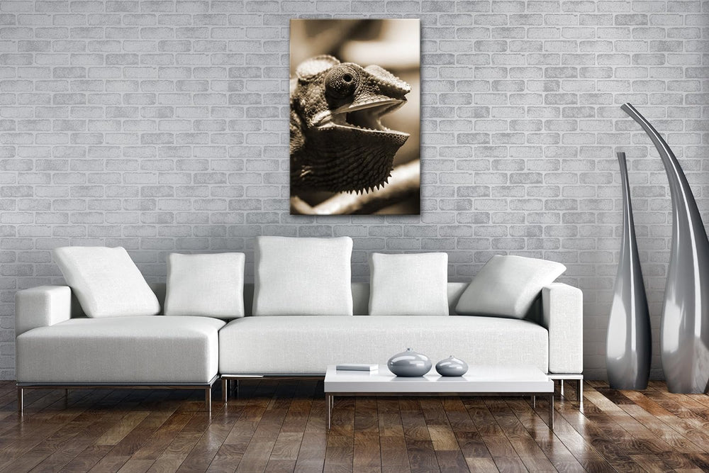deyoli lustiges Chamäleon Format: 80x60 Effekt: Sepia als Leinwand, Motiv fertig gerahmt auf Echthol