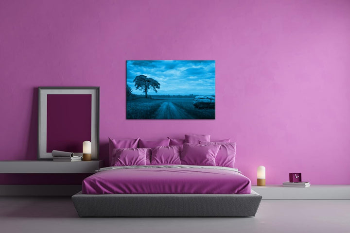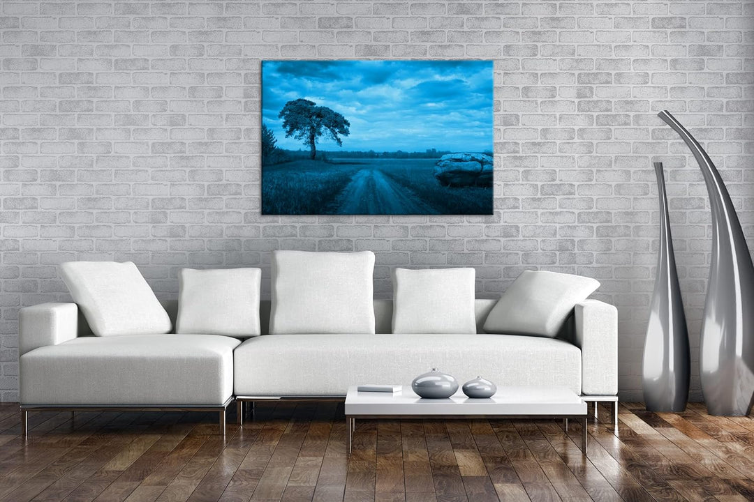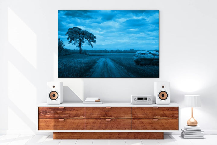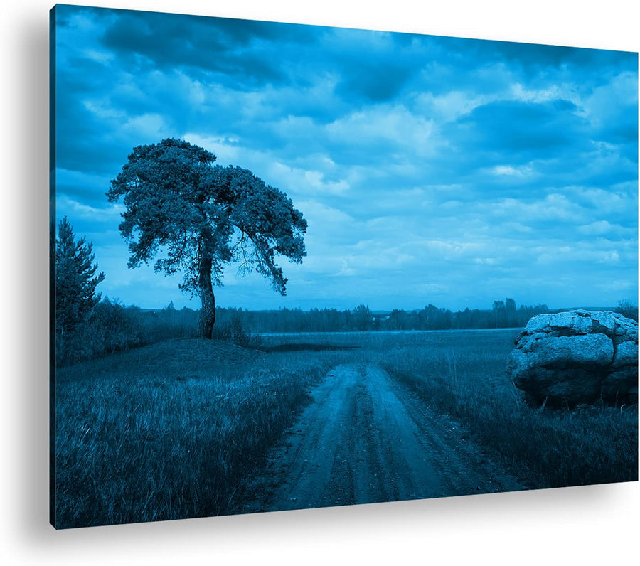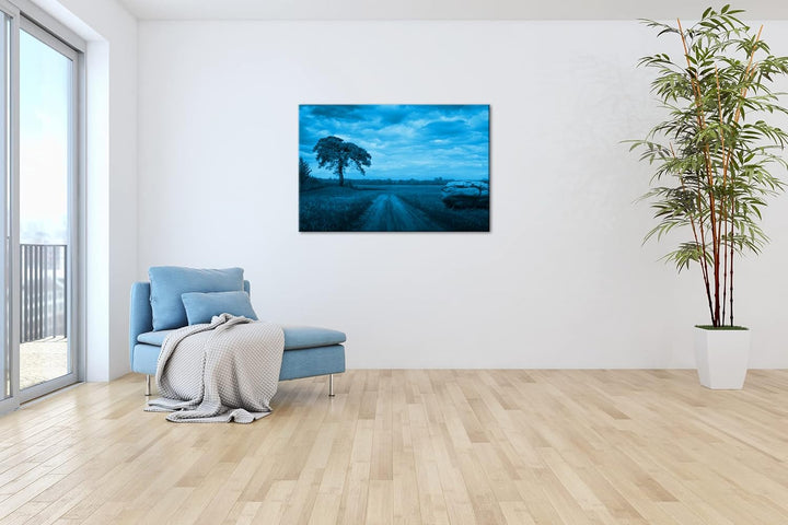 deyoli malerischer bewölkter Feldweg Format 80x60 Effekt: Monocrome Blau als Leinwandbild, Motiv fer