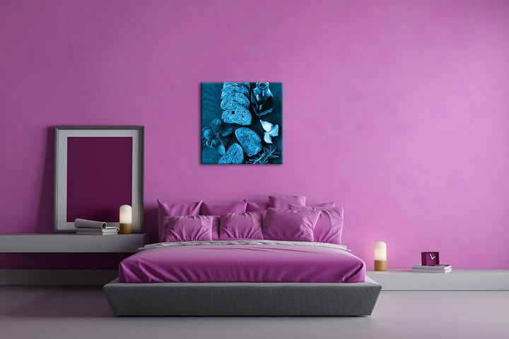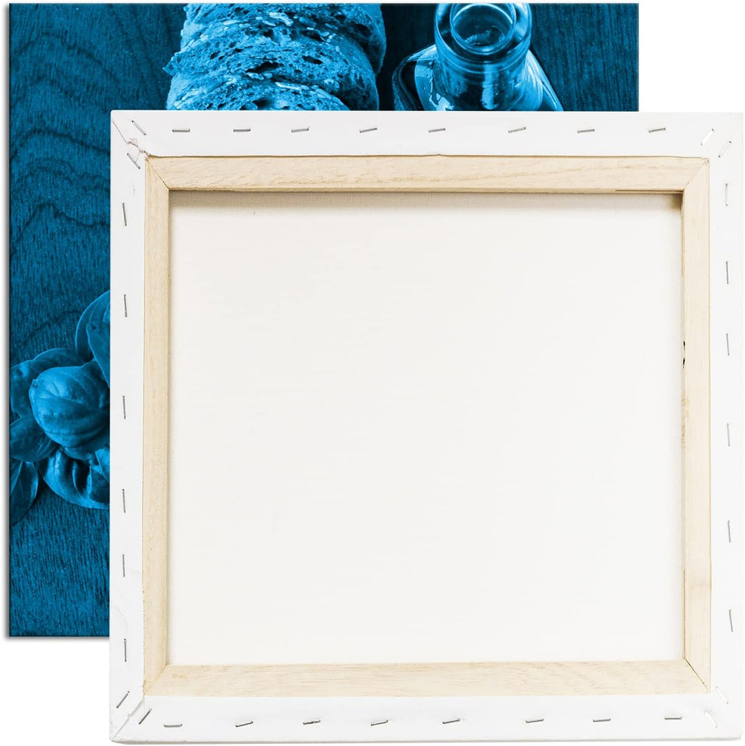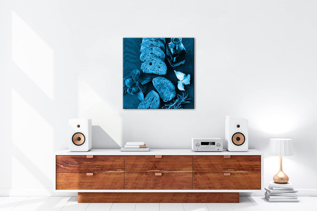 deyoli mediterranes Oliven Öl mit Brot Format: 70x70 Effekt: Monocrome Blau als Leinwandbild, Motiv