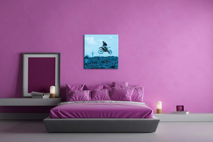 deyoli Motocross Fahrer im Sprung Format: 70x70 Effekt: Monocrome Blau als Leinwandbild, Motiv ferti