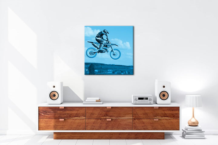 deyoli Motocross Stunt Format: 70x70 Effekt: Monocrome Blau als Leinwandbild, Motiv fertig gerahmt a
