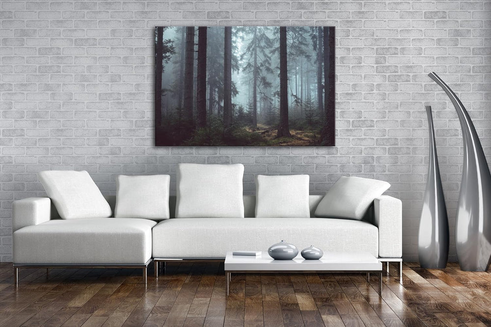 deyoli mysteriöser Nadelwald Format: 80x60 als Leinwand, Motiv fertig gerahmt auf Echtholzrahmen, Ho