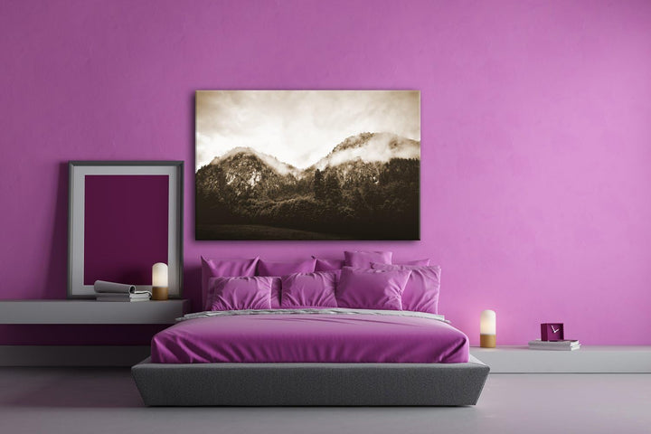 deyoli Nebel bedeckte Berge Format: 80x60 Effekt: Sepia als Leinwand, Motiv fertig gerahmt auf Echth
