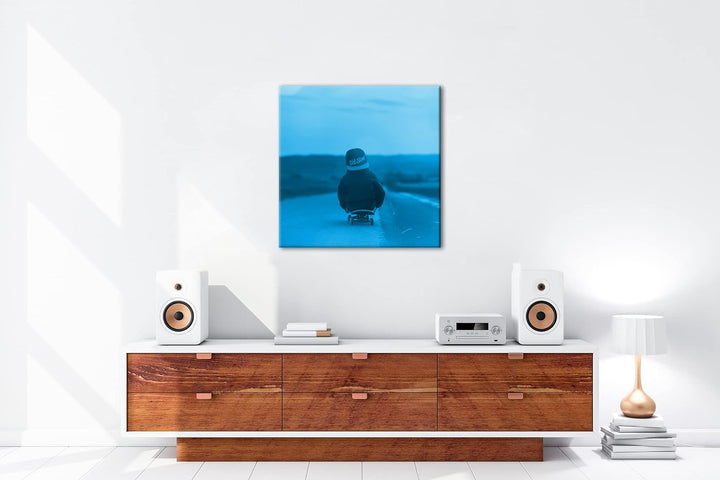 deyoli niedlicher Skater bei Sonnenuntergang Format: 60x60 Effekt: Monocrome Blau als Leinwandbild,