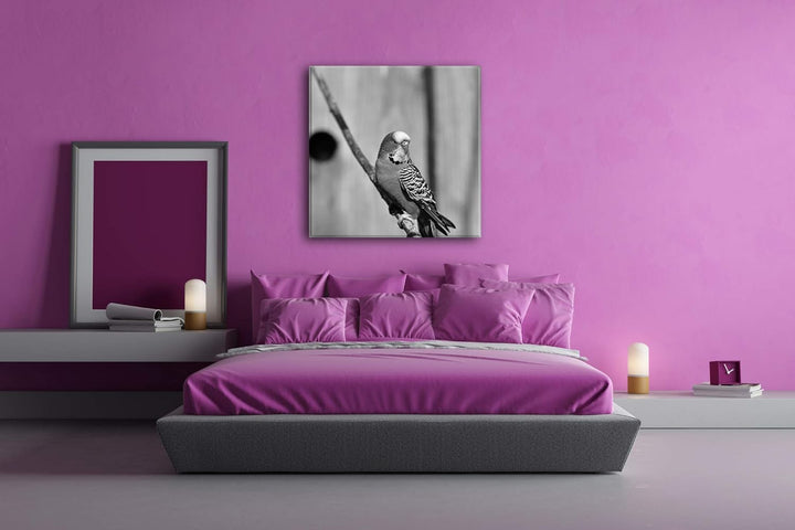 deyoli niedlicher Wellensittich Format: 70x70 Effekt: Schwarz&Weiss als Leinwandbild, Motiv auf Echt