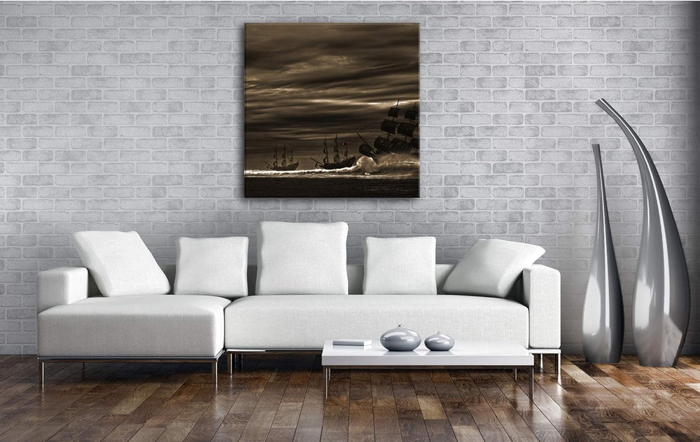 deyoli Piratenschiffe auf hoher See Format: 70x70 Effekt: Sepia als Leinwandbild, Motiv fertig gerah