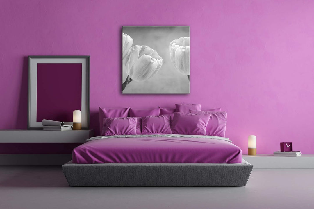 deyoli Rosafarbene Tulpen Format: 70x70 Effekt: Schwarz&Weiss als Leinwandbild, Motiv auf Echtholzra
