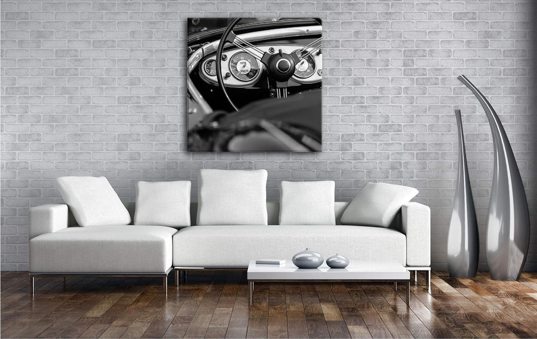 deyoli Roter Cabrio Oldtimer Format: 60x60 Effekt: Schwarz&Weiss als Leinwandbild, Motiv auf Echthol