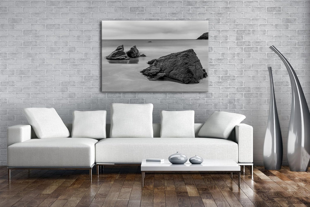 deyoli Sandstrand in Schottland Effekt: Schwarz/Weiss Format: 80x60 als Leinwand, Motiv fertig gerah
