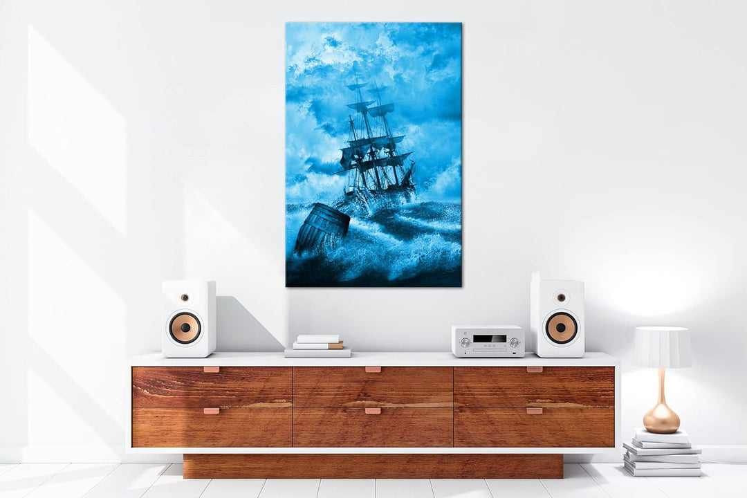 deyoli Schiff bei stürmischen Wetter in Seenot Format 80x60 Effekt: Monocrome Blau als Leinwandbild,