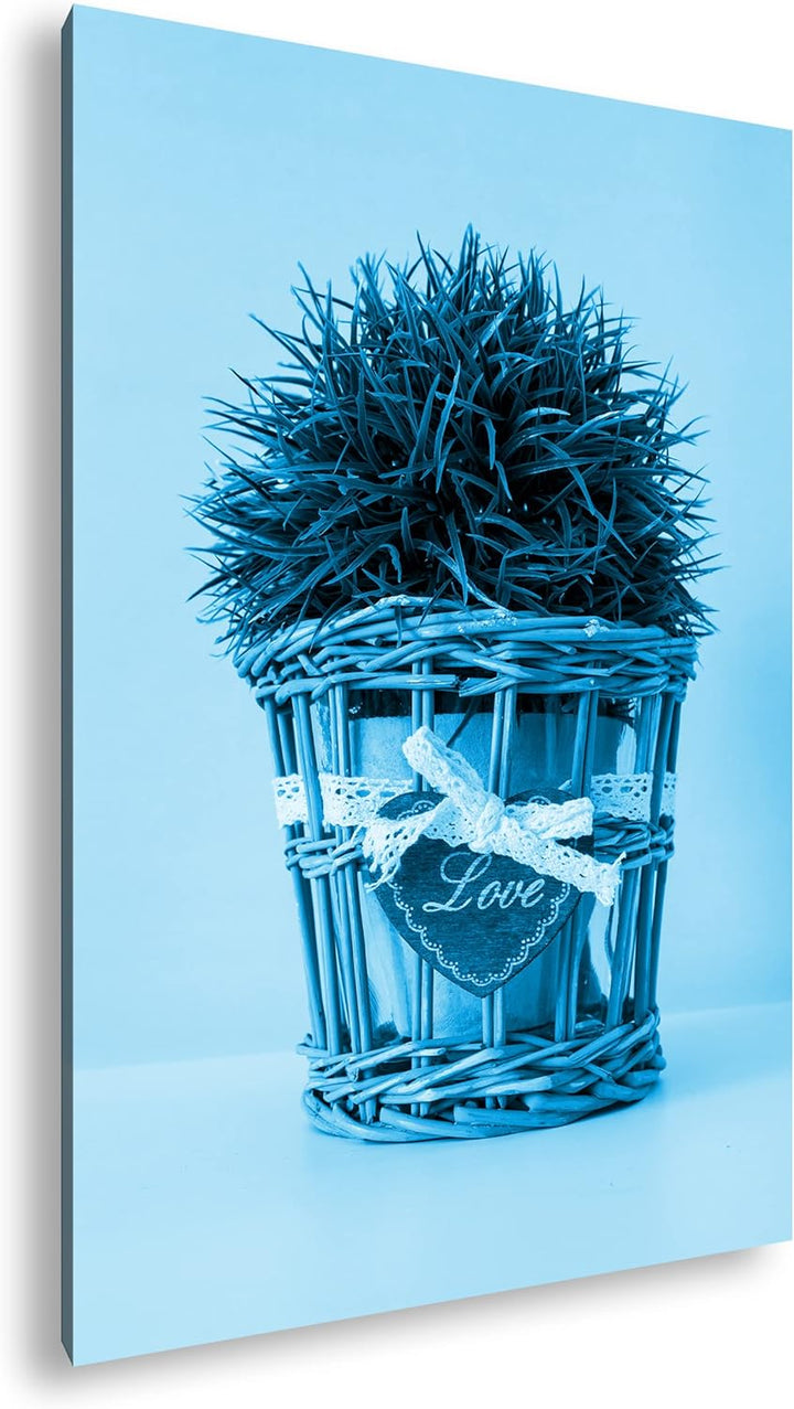 deyoli Schilf im Blumentopf Format 80x60 Effekt: Monocrome Blau als Leinwandbild, Motiv fertig gerah