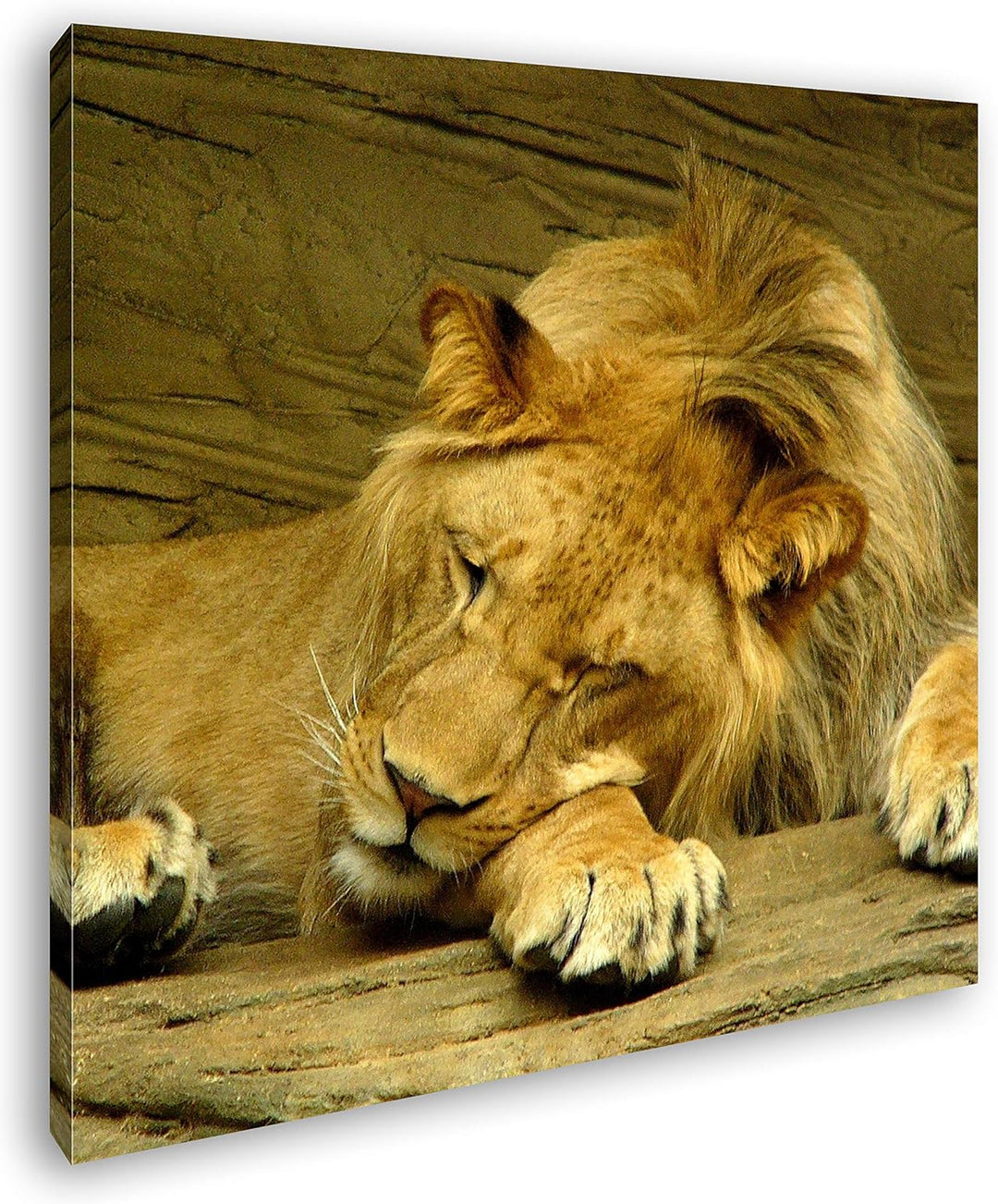 deyoli schlafender Löwe Format: 70x70 als Leinwandbild, Motiv fertig gerahmt auf Echtholzrahmen, Hoc