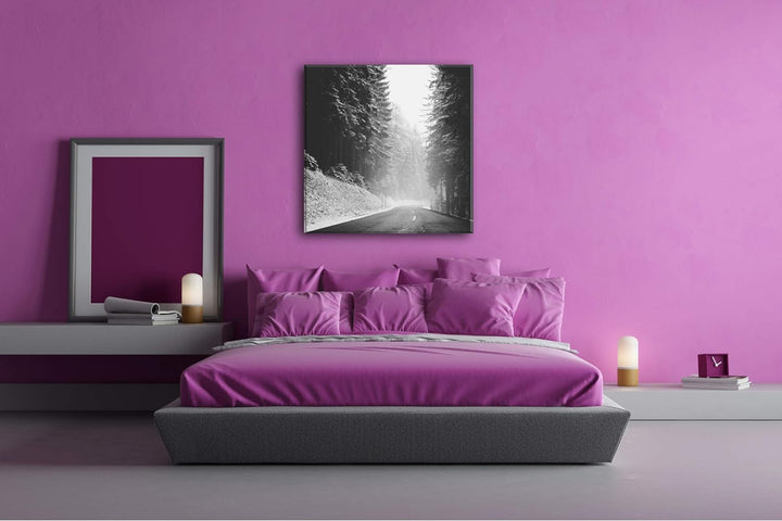 deyoli Schnee bedeckte Landstrasse Format: 60x60 Effekt: Schwarz&Weiss als Leinwandbild, Motiv auf E