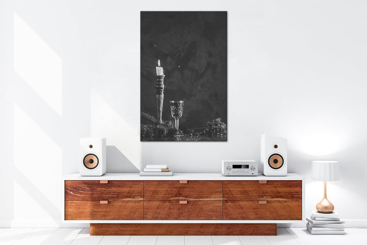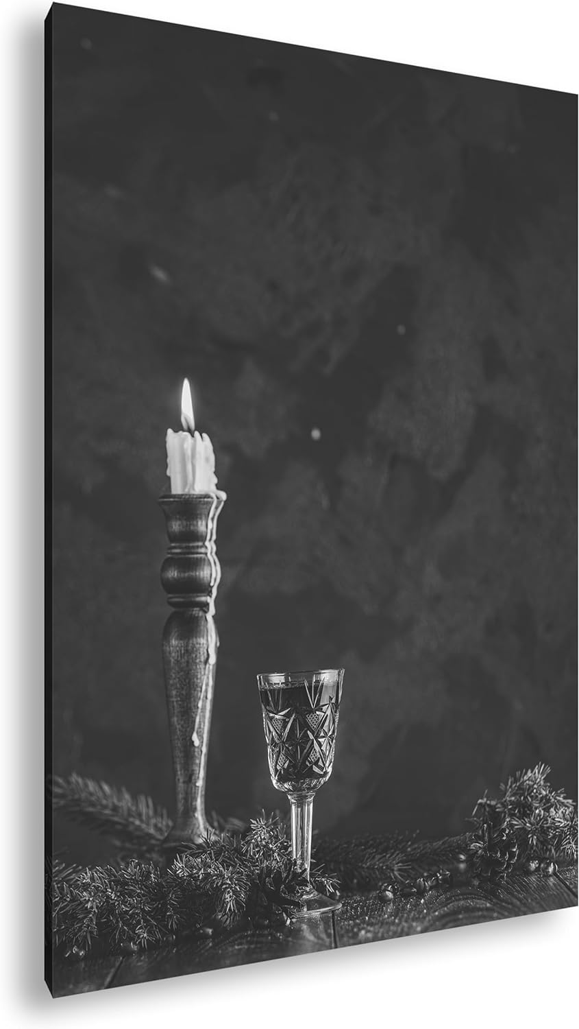 deyoli schöne Kerze mit Sektglas Format: 80x60 cm Effekt: Schwarz/Weiss als Leinwandbild, Motiv fert