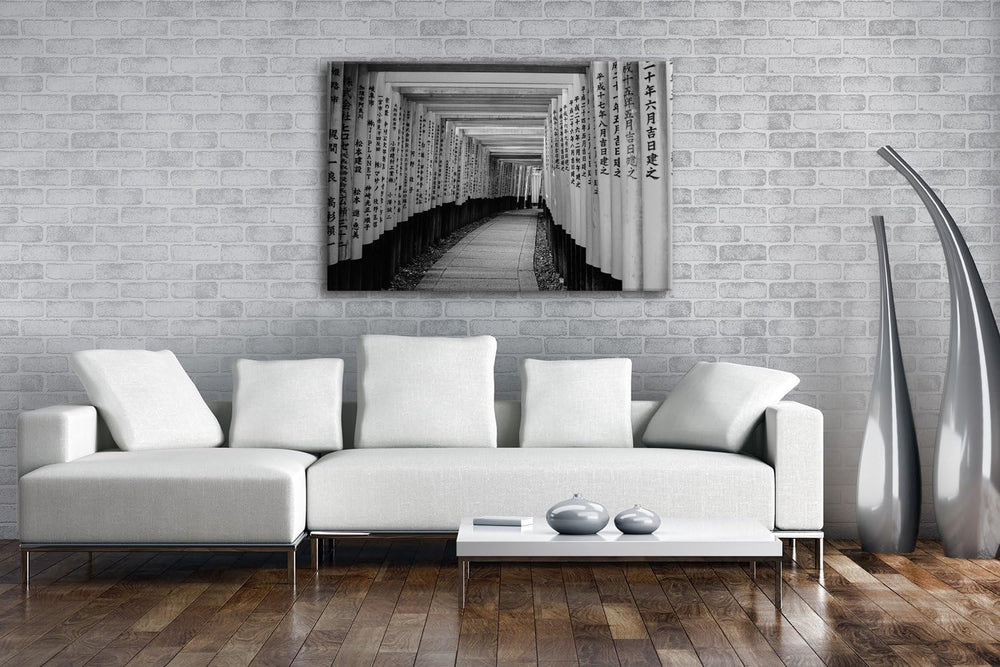 deyoli Shinto weg in Japan Format: 80x60 Effekt: Schwarz/Weiss als Leinwand, Motiv fertig gerahmt au