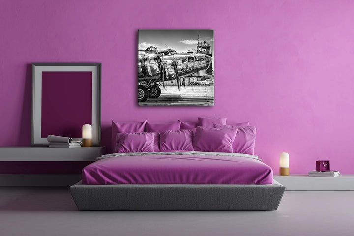 deyoli Silbernes Militär Flugzeug Format: 70x70 Effekt: Schwarz&Weiss als Leinwandbild, Motiv fertig