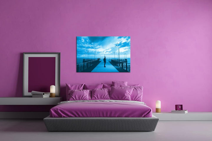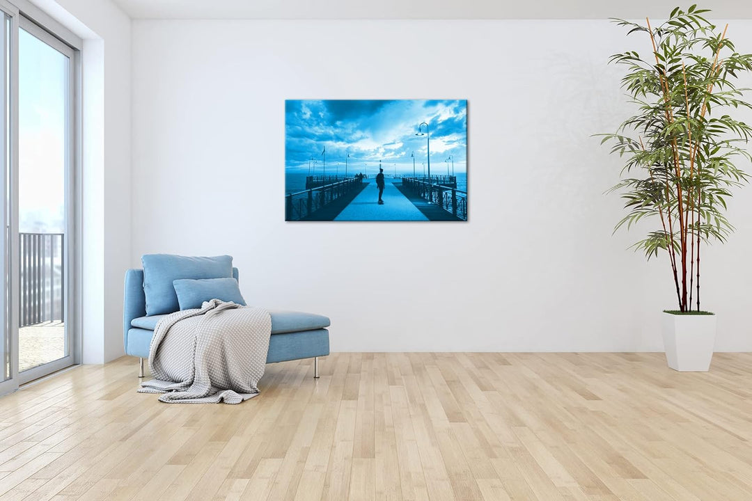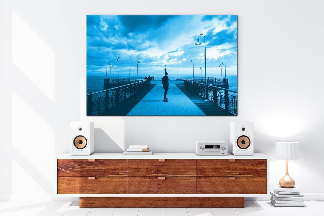 deyoli Skater bei Sonnenuntergang Format: 80x60 Effekt: Monocrome Blau als Leinwandbild, Motiv ferti