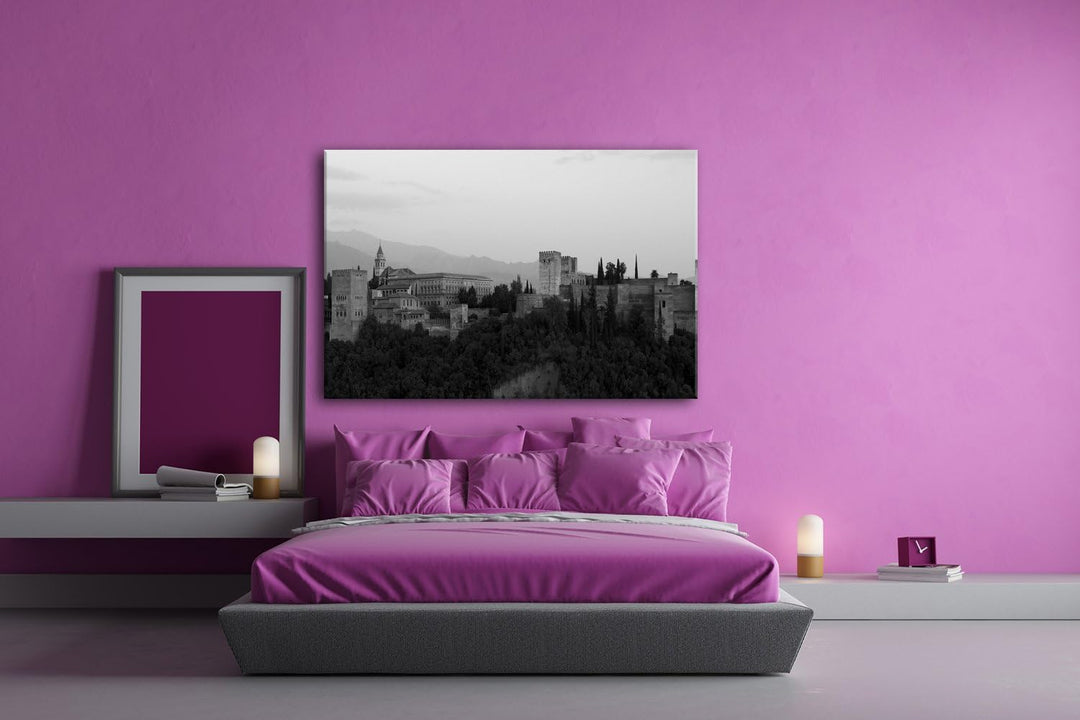 deyoli spanische Burg Format: 80x60 Effekt: Schwarz/Weiss als Leinwand, Motiv fertig gerahmt auf Ech