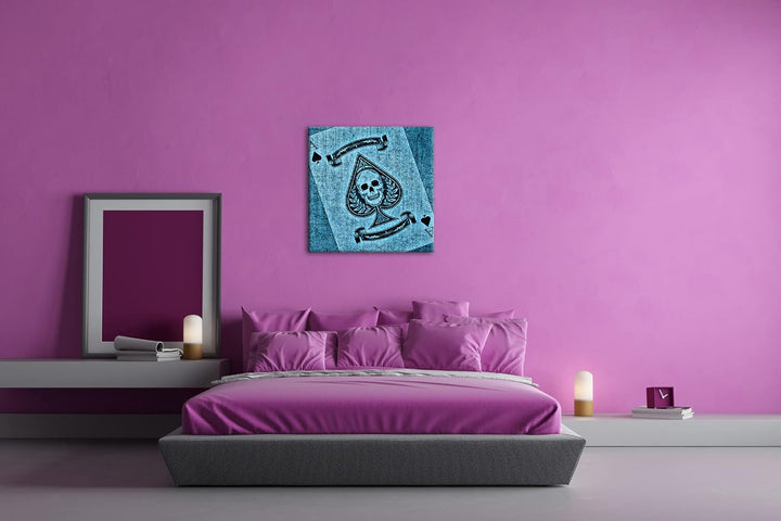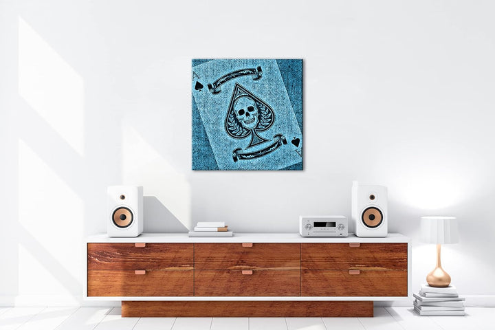 deyoli Spielkarte Ass Pik Format: 70x70 Effekt: Monocrome Blau als Leinwandbild, Motiv fertig gerahm