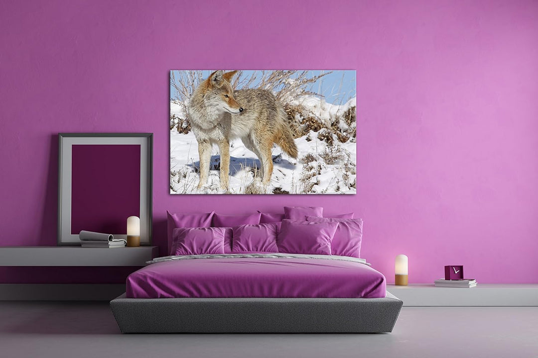 deyoli Stolzer Wolf in Winterlandschaft Format: 80x60 als Leinwandbild, Motiv fertig gerahmt auf Ech