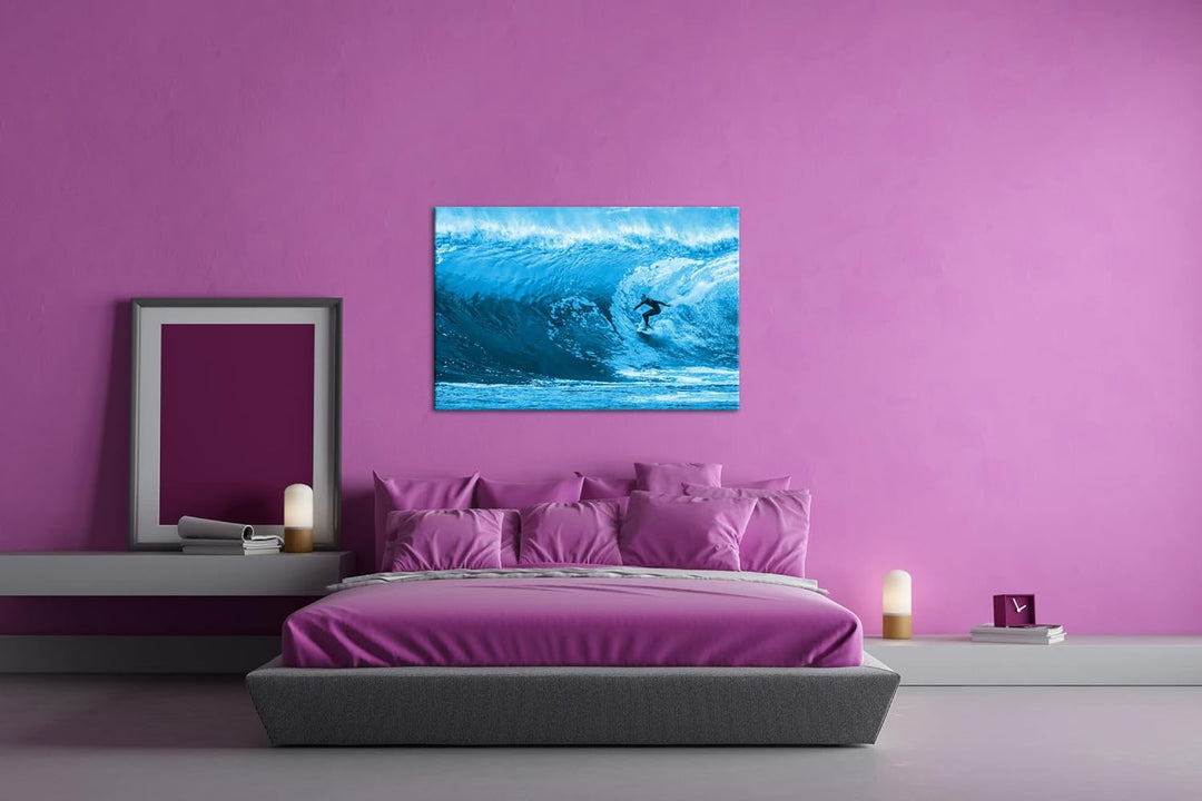 deyoli Surfer in Aktion Format 80x60 Effekt: Monocrome Blau als Leinwandbild, Motiv fertig gerahmt a