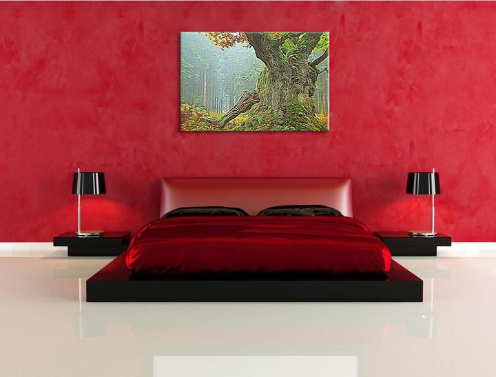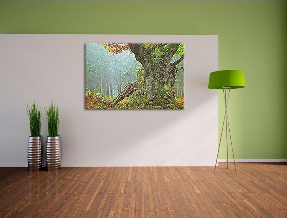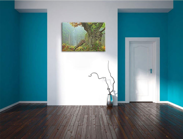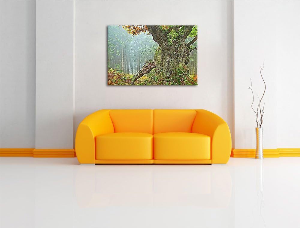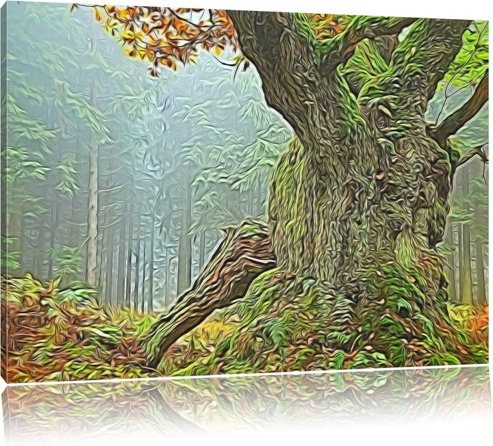 Dicker Baum im Wald im Moos Deluxe Format: 100x70 cm auf Leinwand, XXL riesige Bilder fertig gerahmt