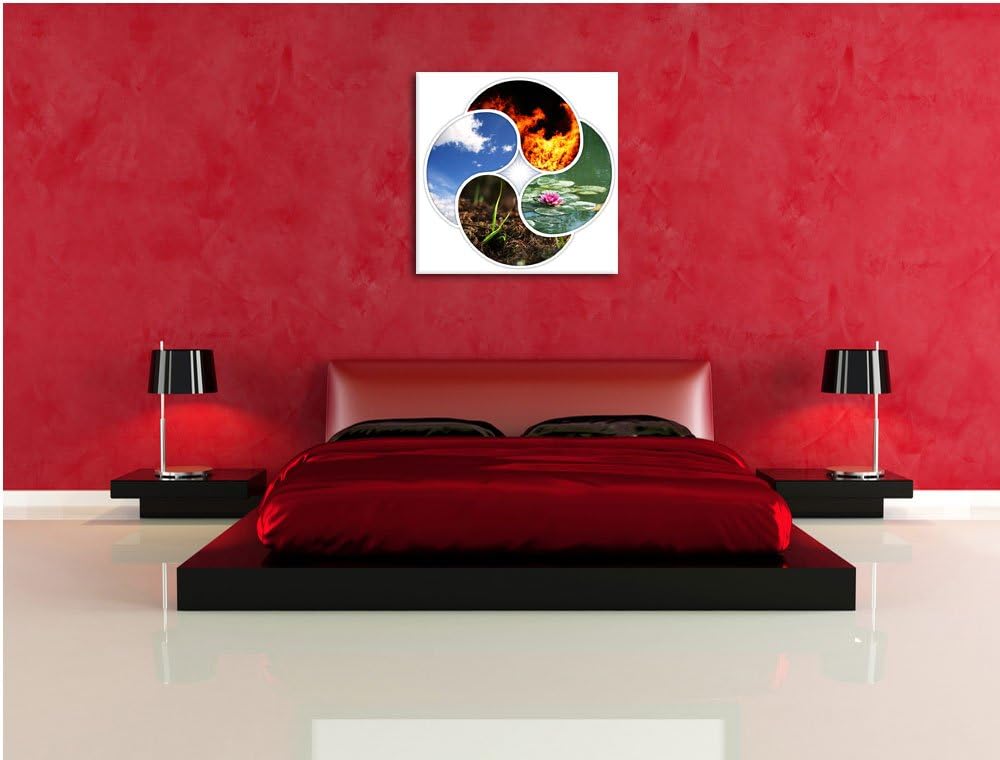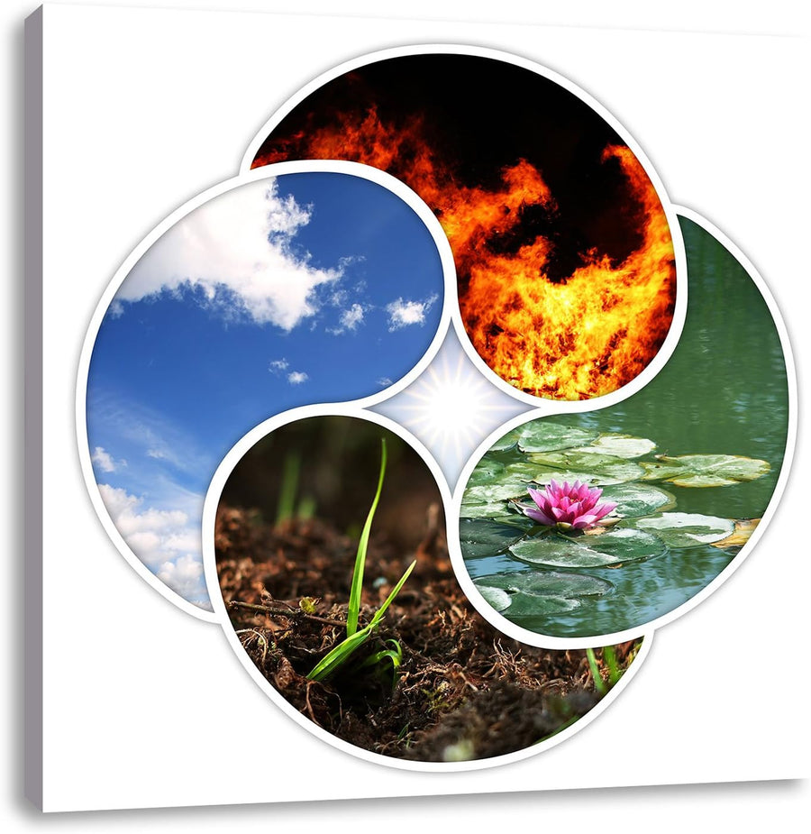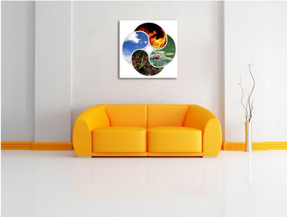 Die vier Elemente, Format: 70x70 auf Leinwand, XXL riesige Bilder fertig gerahmt mit Keilrahmen, Kun